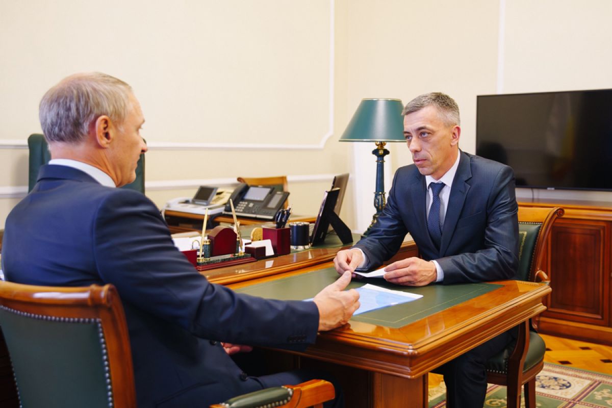 В Рязанской области продолжается реализация программы «Герои62». В конце сентября слушатели первого потока регионального кадрового проекта завершили прохождение второго образовательного модуля и приступили к проектной деятельности. На старте важного периода обучения участника программы Константина Панова напутствовал его наставник – председатель Рязанской областной Думы Аркадий Фомин. Встреча состоялась во вторник, 14 октября, в региональном парламенте.